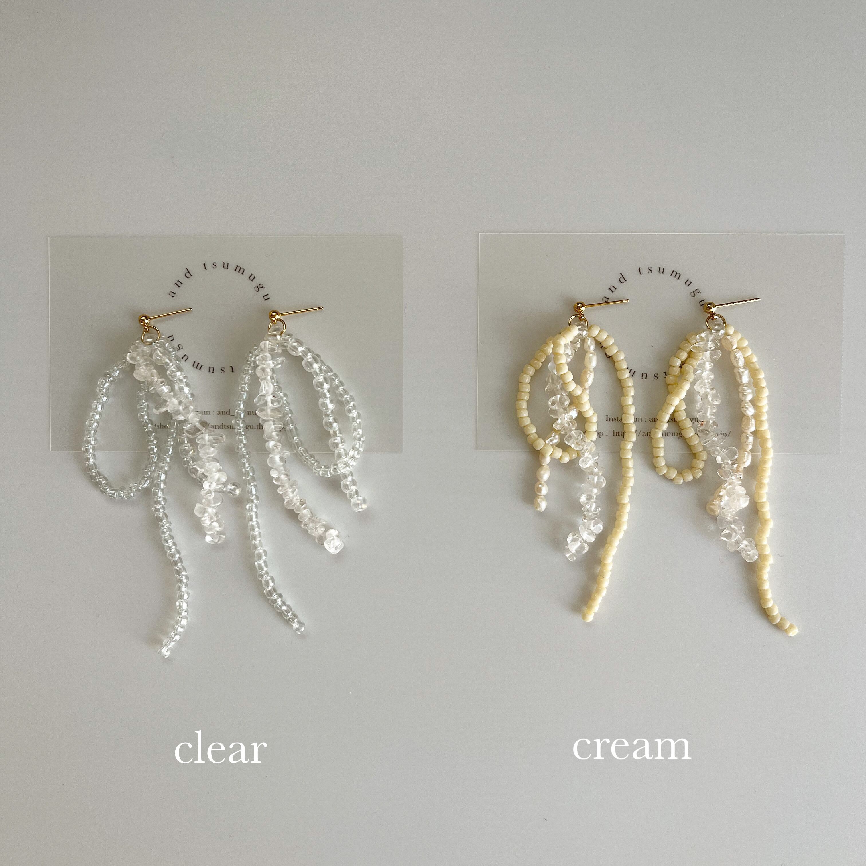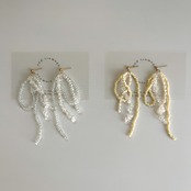 イヤリングはイヤーカフ仕様になります。(写真7枚目)大きく感じる方は耳にはめ込んだ後、ぎゅっと通り穴を小さくして調節してお使いください。